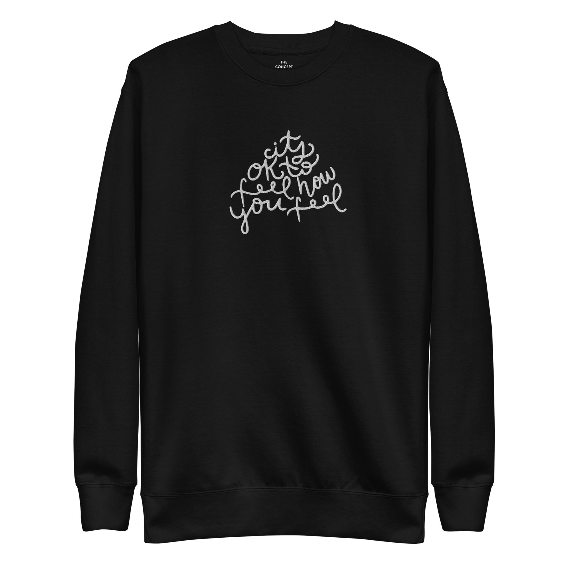 This sweatshirt is a reminder that it’s ok to feel how you feel. It's normal to have a range of emotions and that no one is expected to be perfect. We hope it provides you comfort as you navigate through the complexities of life.