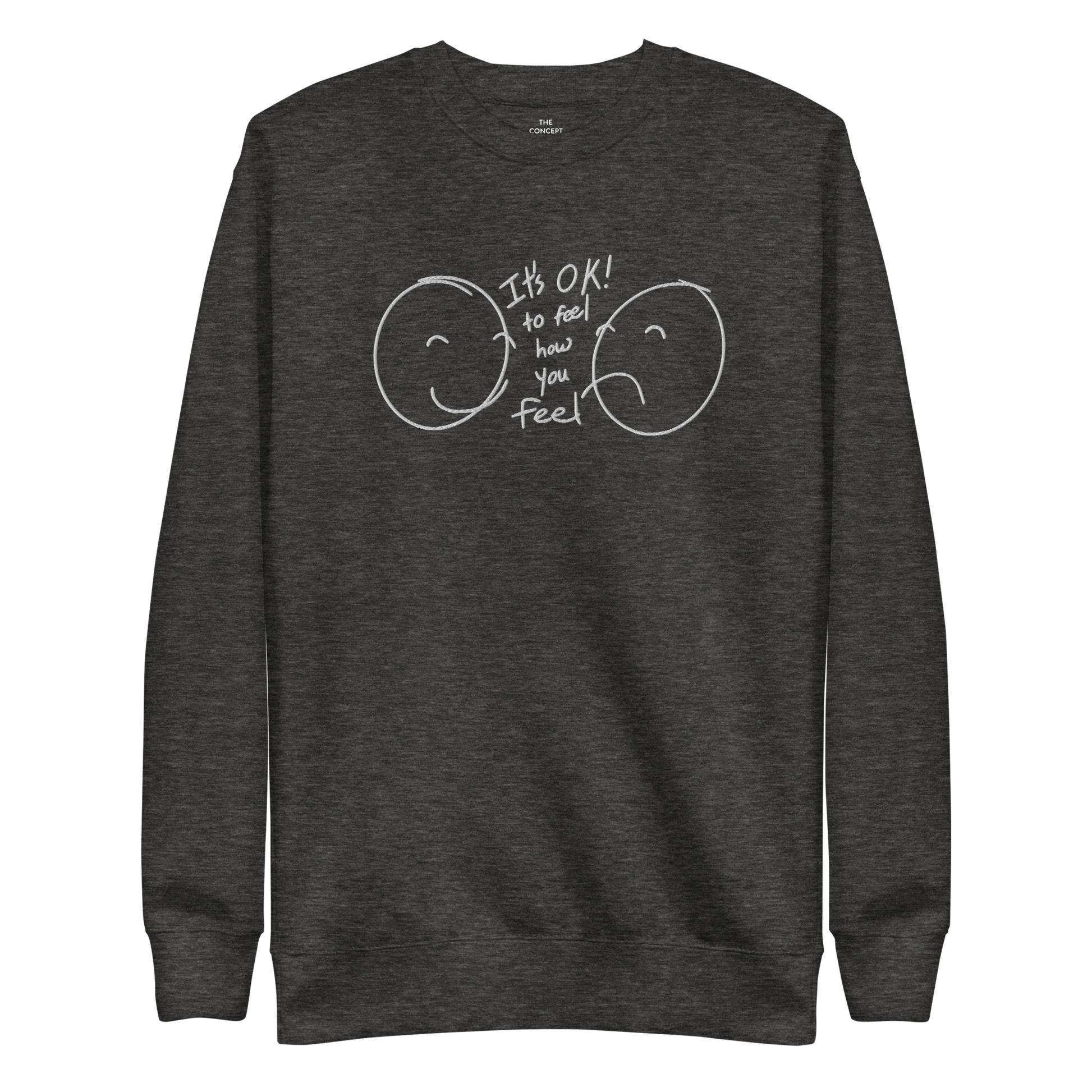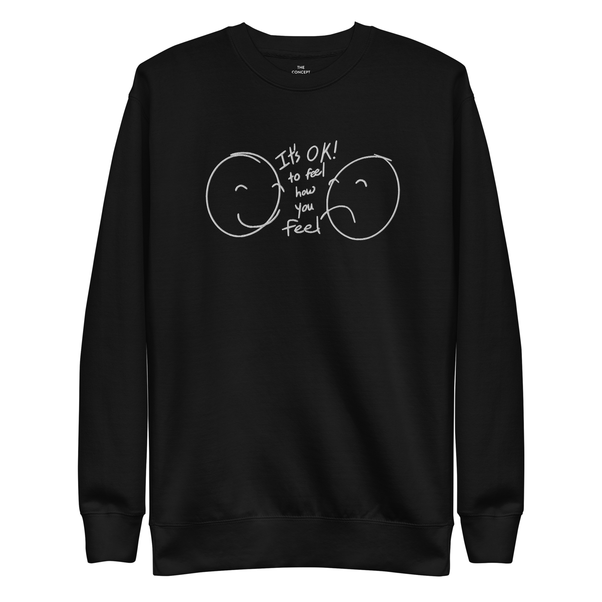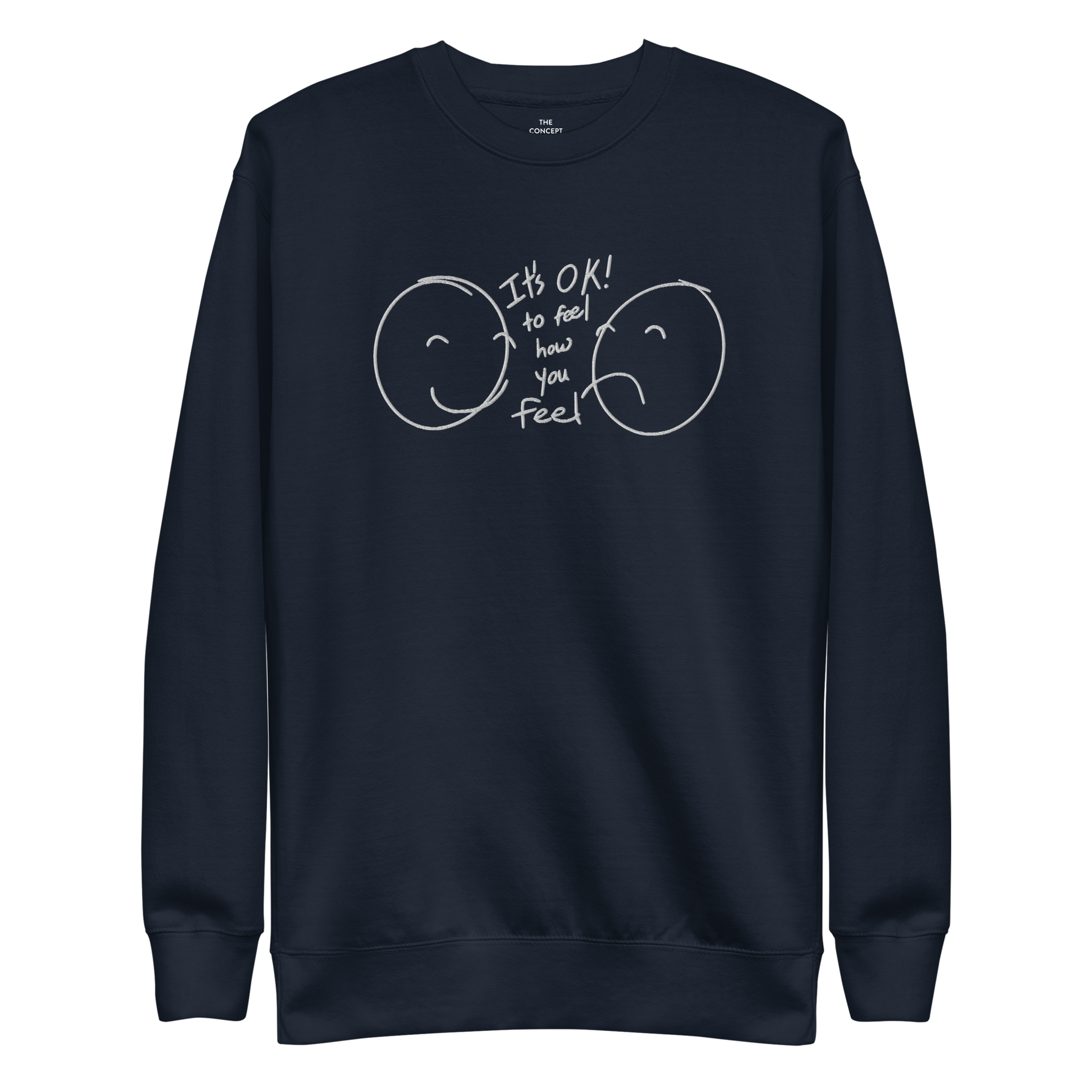 Experience the realization of one of our initial sketches. This sweatshirt is a reminder that it’s ok to feel how you feel. It's normal to have a range of emotions and that no one is expected to be perfect. We hope it provides you comfort as you navigate through the complexities of life.